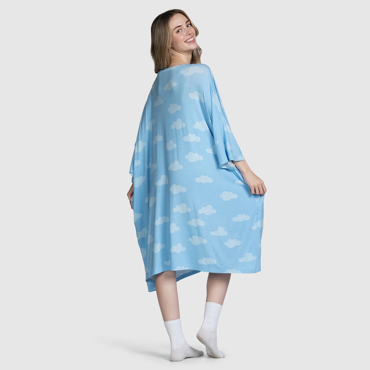 Both styles share the same oversized fit and features (like side pockets), but the fabric is where they differ. Our classic Sleep Tees are made from a lightweight bamboo blend – perfect for hot sleepers, warm climates, or summer nights.